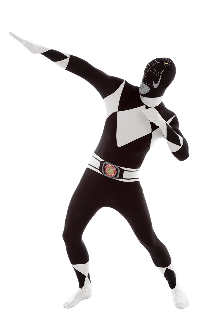 This Adult Black Power Ranger Morphsuit Costume consists an all-in-one skin tight Morphsuit, featuring intricate detailing, from the belt, to the socks and the headpiece. The Morphsuit is extremely breathable, so you can fight off the bad guys and be comfortable at the same time. It’s also a great group costume idea.