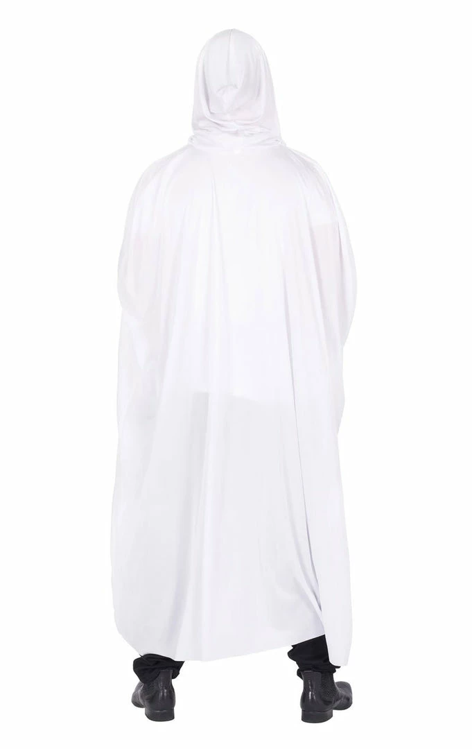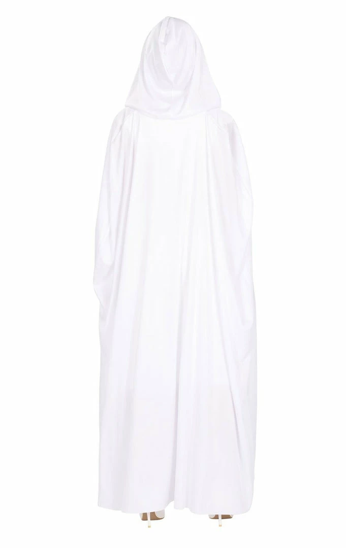 Don this Unisex White Hooded Cape and conceal your identity! It’s the perfect costume accessory for anyone that’s dressing as a ghost, wizard, angel, sorcerer; or any other creature or character that conceals their body with a glowing white cloak. It makes a quick and easy costume for Halloween – simply wear it over your normal clothes and add face-paint and accessories.