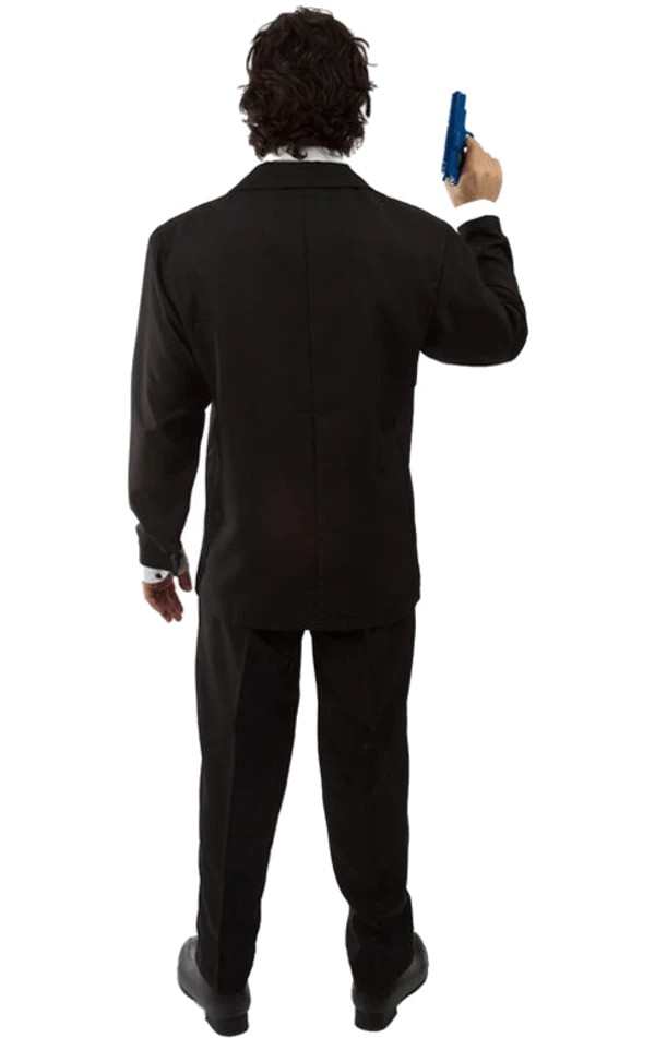 The Adult James Bond Costume includes a black suit jacket with an attached mock white. It also features a red handkerchief and a black bow tie, as well as a pair of matching trousers. Your suave 007 look will be complete in a matter of minutes. All you need extra is a fake gun.