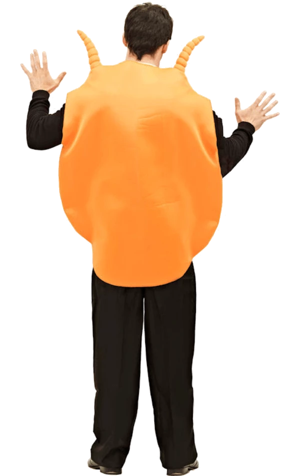 The Adult Retro Space Hopper Costume is made up of a vibrant orange tunic in the shape of the Space Hopper, with unicorn-like handles at the top and the famous smiley face printed in black on the front. This is an easy and comfortable costume that will make a big impact as you bounce to the beat on the dancefloor, showing off your moves.