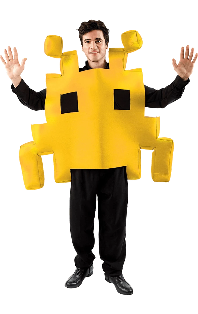 Put a spin on the traditional green alien by dressing-up as one of the most famous Sci-Fi games of all-time, the 80’s Space Invader. Our fun Yellow Space Invader Costume will transform you into a retro character from the game! It’s big, bold and will make you stand out at the party.