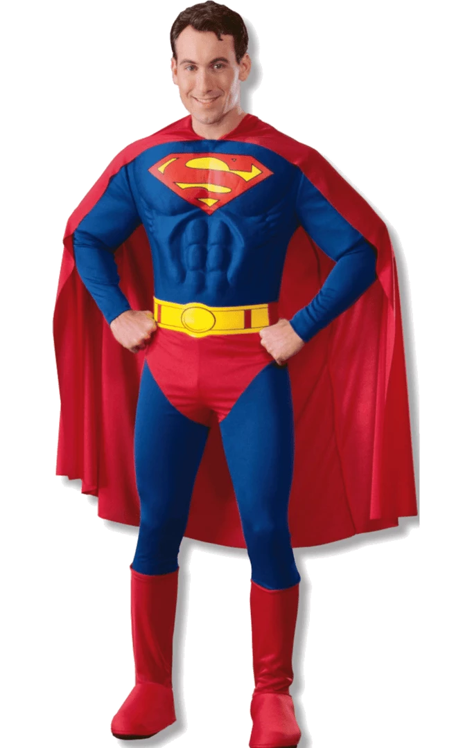 Soar high into the sky as you become the ultimate Superman with our Classic Muscle Superman Costume. Get ready to show off your physique as you pull out all your superhero powers and get ready to save the day.