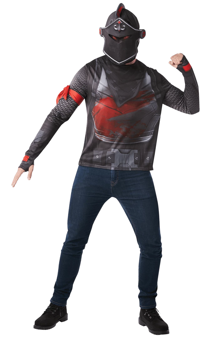 Does your son have a Fortnite obsession? Let him get back to reality and bring his favourite game to life with our Kids Black Knight Costume! The Dark Knight is one of the rarest and most sought after skins in the game. He was only available for a limited time by reaching level 100 in a short space of time. Hence why everyone wants him so much! Included in the costume is a printed top and full face snood.