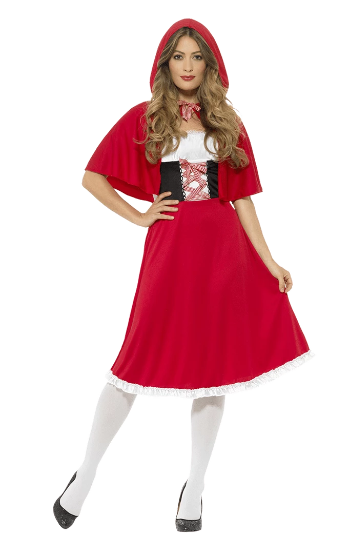 If you’re going to visit Grandma’s house wearing this outfit, be sure not to go it alone! The Adult Red Riding Hood Fairytale Costume is perfect for a fairytale themed party, and is even appropriate for teachers or parents this World Book Day. Make sure to have your wits about you, and double-check Grandma before entering her home in this red riding hood costume for women. This costume features a red midi dress with black and white bodice and gingham ribbon to lace it up. Pop the hood up on the satin capelet and you’re ready to head out into the woods – just beware of the Big Bad Wolf!