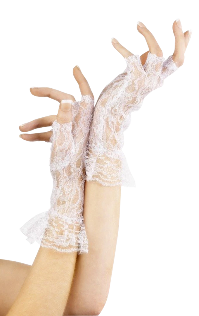 Buy ๐งจ Smiffys Dolls Adult White Short Lace Fingerless Gloves ๐