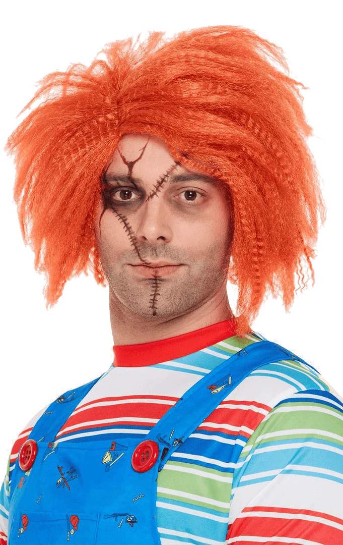 This iconic style from the good doll gone bad is a staple with every Chucky Costume. The orange Chucky Wig is an easy way to get that staple hairstyle of the serial killer doll, so pop it on this Halloween and rock up in this horror movie ensemble and scare all trick-or-treaters that arrive on your doorstep.