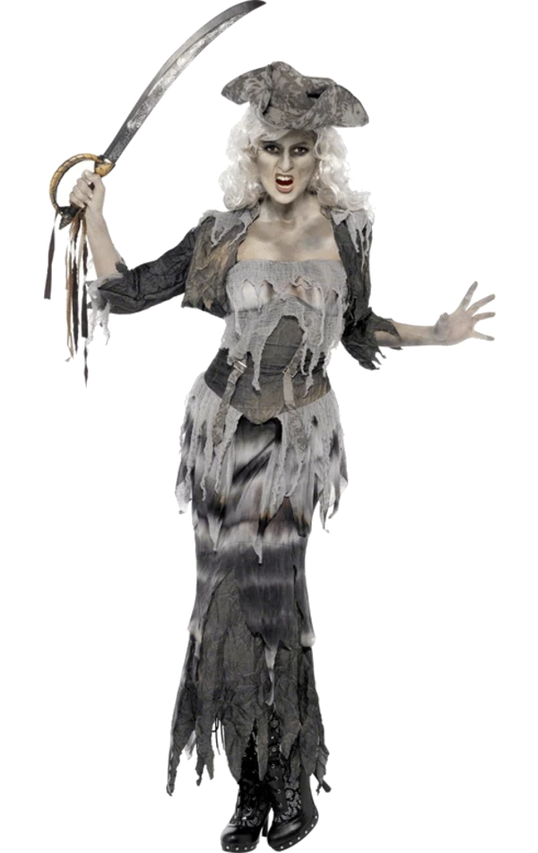 Don’t be any old pirate, be an UNDEAD pirate. The coolest kind by far. Our Ladies Undead Pirate Costume is super cool, it gives you a faded ”sea washed” look, as though for one night you have risen from your watery grave to wreck havoc on the world. This Halloween, be the vengeance of the sea and take down all in your path!