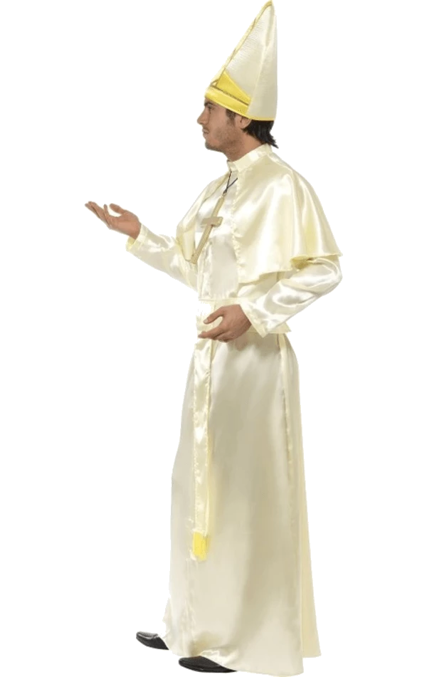 Transform yourself into His Holiness in this impressive gold-coloured Pope Novelty Costume. This costume brings you instant papal power as you become the Bishop of Rome and leader of the Catholic Church overnight! Enjoy waving your bible and muttering prayers under your breath as you save the souls of party-goers at your Saints and Sinners or Halloween themed party.
