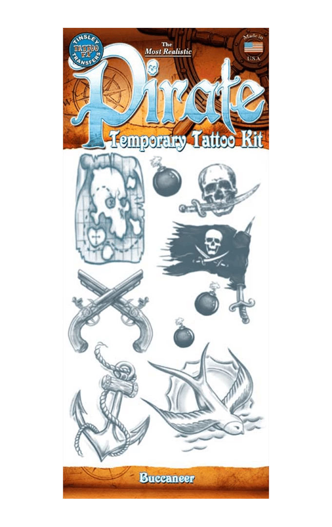 Pirate Temporary Tattoo Set. Super realistic. Variety of different exciting pirate themed tattoos in pack.