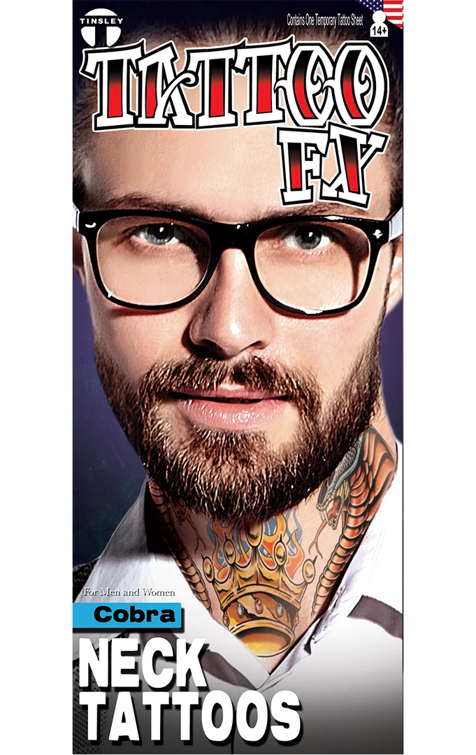 Whether you just want to test out if looking super cool will look good on you for the day, or you just aren’t ready to commit yet, the Cobra Neck Tattoo FX is the perfect in-between. This fake tattoo looks so realistic, people will think you were brave enough to face the ink! Great for Halloween, this tattoo would go with a voodoo king or witch doctor costume.